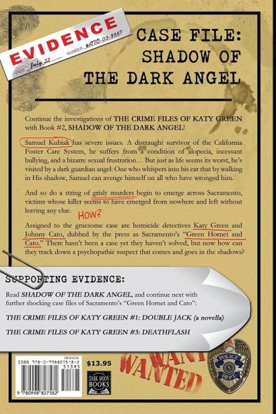 Continue the investigations of THE CRIME FILES OF KATY GREEN with Book #2, SHADOW OF THE DARK ANGEL! Samuel Kubiak has severe issues. A distraught survivor of the California Foster Care System, he suffers from a condition of alopecia, incessant bullying, and a bizarre sexual frustration… But just as life seems its worst, he's visited by a dark guardian angel: One who whispers into his ear that by walking in His shadow, Samuel can avenge himself on all who have wronged him. And so do a string of grisly murders begin to emerge across Sacramento, victims whose killer seems to have emerged from nowhere and left without leaving any clue. Assigned to the gruesome case are homicide detectives Katy Green and Johnny Cato, dubbed by the press as Sacramento's "Green Hornet and Cato." There hasn't been a case yet they haven't solved, but now how can they track down a psychopathic suspect that comes and goes in the shadows? Discover why readers have been applauding this stark, fast-paced noir series by multiple-award-winning author, Gene O'Neill! And don't miss out on the other thrilling books in this series: THE CRIME FILES OF KATY GREEN #1: DOUBLE JACK (a novella) THE CRIME FILES OF KATY GREEN #2: SHADOW OF THE DARK ANGEL THE CRIME FILES OF KATY GREEN #3: DEATHFLASH THE CRIME FILES OF KATY GREEN #4: A STICK OF DOUBLEMINT