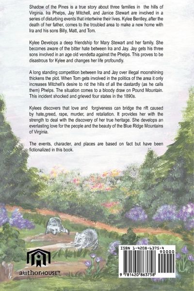 Shadow of the Pines is a true story about three families in the hills of Virginia. Ira Phelps, Jay Mitchell, and Janice Stewart are involved in a series of disturbing events the intertwine their lives. Kylee Bentley, after the death of her father, comes to the troubled area to make a new home with Ira and his sons Billy, Matt, and Tom. Kylee Develops a deep friendship for Mary Stewart and her family. She becomes aware of the bitter hate between Ira and Jay. Jay gets his three sons involved in an age old vendetta against the Phelps. This proves to be disastrous for Kylee and changes her life profoundly. A long standing competition between Ira and Jay over illegal moonshining thickens the plot. When Tom gets involved in the politics of the area it only increases Mitchell''s desire to rid the hills of all the dastardly (as he calls them) Phelps. The situation comes to a bloody draw on Pound Mountain. This incident shocked and grieved four states in the 1890s. Kylees discovers that love and forgiveness can bridge the rift caused by hate,greed, rape, murder, and retaliation. It provides her with the strength to deal with the discovery of her true heritage. She develops an everlasting love for the people and the beauty of the Blue Ridge Mountains of Virginia. The events, character, and places are based on fact but have been fictionalized in this book.