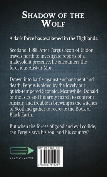 A dark force has awakened in the Highlands. Scotland, 1388. After Fergus Scott of Eildon travels north to investigate reports of a malevolent presence, he encounters the ferocious Alistair Mor. Drawn into battle against enchantment and death, Fergus is aided by the lovely but quick-tempered Seonaid. Meanwhile, Donald of the Isles and his army march to confront Alistair, and trouble is brewing as the witches of Scotland gather to recreate the Book of Black Earth. But when the forces of good and evil collide, can Fergus save his soul and his country? Inspired by the story of Alexander Stewart - The Wolf of Badenoch.