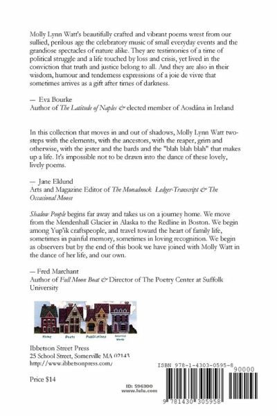 Shadow People begins far away and takes us on a journey home. We move from the Mendenhall Glacier in Alaska to the Redline in Boston. We begin among Yup'ik craftspeople, and travel toward the heart of family life, sometimes in painful memory, sometimes in loving recognition. We begin as observers but by the end of this book we have joined with Molly Watt in the dance of her life, and our own. ? Fred Marchant Author of Full Moon Boat & Director of The Poetry Center at Suffolk University