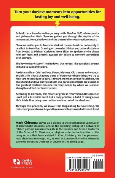 Embark on a transformative journey with Shadow Self, where pastor and philosopher Mark Chironna guides you through the depths of the human soul. Here, shadows and the potential for resurrection coexist. Chironna invites you to face your darkest corners head-on, not merely to heal but to truly live. Drawing on powerful biblical and cultural stories-from Moses to Michael Corleone, from Elijah to Spiderman-he shows how our fears and dreams awaken our desire to confront adversities with courage. The key to every story? The shadows. Our heroes, like ourselves, are not immune to pain and failure. Anxiety and fear. Grief and loss. Financial stress. Old trauma and wounds. Social strife. These shadowy parts of ourselves-those things we try to hide-are not residues to bury. They are the means of our flourishing, the tools to find and live our fullest self. Our darkest moments are essential. Our greatest mistakes become the very means by which we summon strength and find our truest selves. According to Chironna, this means of grace is resurrection. Resurrection is not just a historical event but a daily practice, a habit of rising above life's trials. Practicing resurrection leads us out of the shadows. Through this practice, we move from languishing to flourishing. We rediscover joy and move beyond trauma and fear toward a life well-lived.