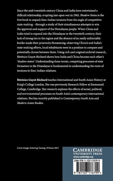 "Since the mid-twentieth century, China and India have entertained a difficult relationship, erupting into open war in 1962. Shadow States is the first book to unpack Sino-Indian tensions from the angle of competitive state-building making - through a study of their simultaneous attempts to win the approval and support of the Himalayan people. When China and India tried to expand into the Himalayas in the twentieth century, their lack of strong ties to the region and the absence of an easily enforceable border made their proximity threatening: observing China's and India's state-making efforts, local inhabitants were in a position to compare and potentially choose between them. Using rich and original archival research, Bâerâenice Guyot-Râechard shows how India and China became each other's 'shadow states'. Understanding these recent, competing processes of state formation in the Himalayas is fundamental to understanding the roots of tensions in Sino-Indian relations"--