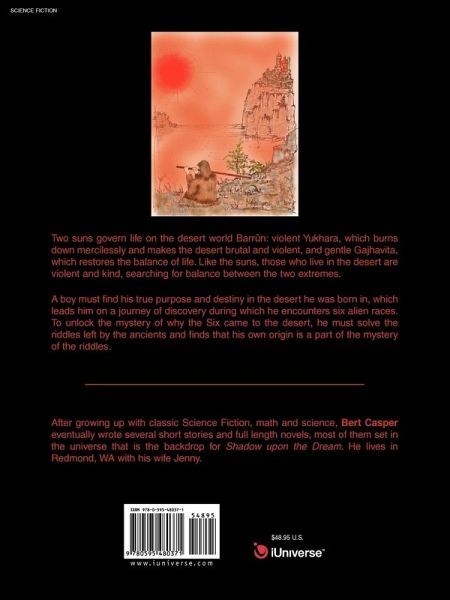 Two suns govern life on the desert world Barrûn: violent Yukhara, which burns down mercilessly and makes the desert brutal and violent, and gentle Gajhavita, which restores the balance of life. Like the suns, those who live in the desert are violent and kind, searching for balance between the two extremes. A boy must find his true purpose and destiny in the desert he was born in, which leads him on a journey of discovery during which he encounters six alien races. To unlock the mystery of why the Six came to the desert, he must solve the riddles left by the ancients and finds that his own origin is a part of the mystery of the riddles.