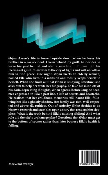 Ørjan Aasen`s life is turned upside down when he loses his brother in a car accident. Overwhelmed by guilt, he decides to leave his past behind and start a new life in Tromsø. But his feelings of guilt follow him to the city of lights and will not allow him to find peace. One night, Ørjan meets an elderly woman, named Ella who lives in a mansion and mostly keeps herself to herself. When she finds out that Ørjan is studying literature, she asks him to help her write her biography. To take his mind off of his dark, depressing thoughts, Ørjan agrees. Before long he becomes engrossed in Ella`s past life, a life of secrets and heartache. He realises that her childhood memories still haunt Ella, following her like a ghostly shadow. Her family was rich, well-respected and above all, ruthless. Out of curiosity Ørjan decides to do his own research and stumbles upon a story that renders him sleepless. What is the truth behind Ella`s missing sibling? And what role did the city`s orphanage play? Questions that Ørjan must get to the bottom of sooner rather than later because Ella`s health is failing.