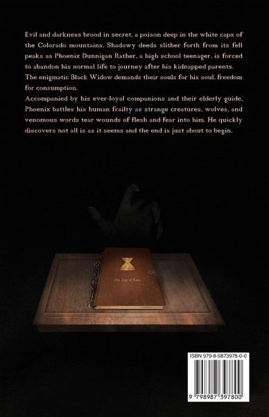 Evil and darkness broods in secret, a poison deep in the white caps of the Colorado mountains. Shadowy deeds slither forth from its fell peaks as Phoenix Dunnigan Rather, a teenager in high school, is forced to abandon his normal life to journey after his kidnapped parents as the enigmatic Black Widow demands their soul for his soul, freedom for consumption. Accompanied by his ever loyal companions and their elderly guide, Phoenix battles his human frailty as strange creatures, wolves, and venomous words tear wounds of flesh and fear into him. He quickly discovers not all is as it seems and the end is just about to begin.