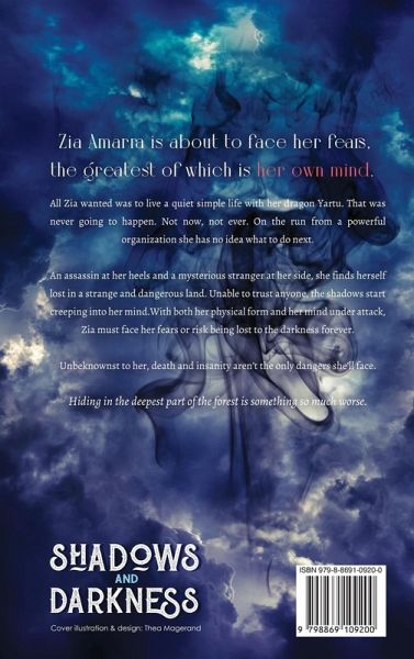 Zia Amarra is about to face her fears. The greatest of which is her own mind. All Zia wanted was to live a quiet life with her dragon Yartu. That was never going to happen. Not now, not ever. On the run from a powerful organization she has no idea what to do next. An assassin at her heels and a mysterious stranger at her side, she finds herself lost in a strange and dangerous land. Unable to trust anyone, the shadows start creeping into her mind. With both her physical form and her mind under attack, Zia must face her fears or risk being lost to the darkness forever. Unbeknownst to her, death and insanity aren't the only dangers she'll face. Hiding in the deepest part of the forest is something so much worse.