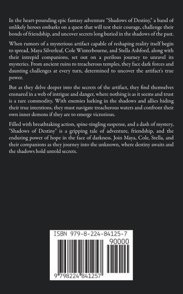 In the mythical realm of Eldoria, where shadows dance with the light and steel clashes with sorcery, a lone hero rises to challenge the darkness that threatens to engulf the land. "Shadows and Steel" chronicles the epic saga of Cole Winterbourne, a valiant warrior whose fate becomes intertwined with the fate of the world itself. As shadows creep across the land and ancient evils stir from their slumber, Cole embarks on a perilous journey filled with danger, adventure, and the promise of redemption. From the towering peaks of the Dragonspine Mountains to the depths of the Shadowwood Forest, Cole faces trials and tribulations that will test his courage, strength, and resolve. With sword in hand and heart afire, Cole battles fierce monsters, treacherous foes, and the darkest of secrets as he seeks to uncover the truth behind the shadows that threaten to consume the world. Along the way, he forges unlikely alliances, discovers hidden powers within himself, and confronts the demons of his past in a quest for justice and salvation. But as Cole delves deeper into the mysteries of Eldoria, he realizes that the fate of the world rests on his shoulders alone. With the forces of darkness closing in around him, he must embrace his destiny and confront the ultimate evil that lurks in the shadows, or risk losing everything he holds dear. Filled with breathtaking action, heart-pounding suspense, and unforgettable characters, "Shadows and Steel" is a gripping tale of heroism, sacrifice, and the enduring power of hope in the face of darkness. Join Cole Winterbourne on an epic journey that will take you to the edge of the world and beyond, where shadows and steel collide in a battle for the fate of Eldoria.
