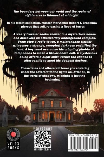The boundary between our world and the realm of nightmares is thinnest at midnight. In his latest collection, master storyteller Robert J. Bradshaw pierces that veil, releasing a flood of terror. A weary traveler seeks shelter in a mysterious house and discovers an otherworldly underground complex. From atop a radio tower, a maintenance worker witnesses a strange, creeping darkness engulfing the land. A boy must overcome his crippling phobia of telephones to make a life-or-death call. A mysterious being offers a night shift worker the chance to alter reality to meet his deepest desires. These tales and others will leave you cowering under the covers with the lights on. After all, in the world of shadows, midnight is just the beginning...