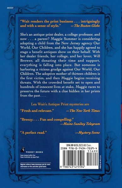 She's an antique print dealer, a college professor, and now...a parent? Maggie Summer is considering adopting a child from the New Jersey agency Our World, Our Children, and she has happily agreed to stage a benefit antiques show on their behalf. With her dealer friends, her college, and her lover, Will Brewer, all donating their time and support, everything is falling into place. But someone is harboring a vicious grudge against Our World, Our Children. The adoptive mother of thirteen children is the first victim, and then Maggie begins receiving threats. With the crowded benefit set to open and hundreds of innocent lives at stake, Maggie races to preserve the future with a clue hidden in her prints from the past....