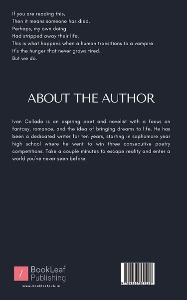 Ivan Collado is an aspiring poet and novelist with a focus on fantasy, romance, and the idea of bringing dreams to life. He has been a dedicated writer for ten years, starting in sophomore year high school where he went to win three consecutive poetry competitions. Take a couple minutes to escape reality and enter a world you've never seen before.