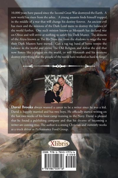 10,000 years have passed since the Second Great War destroyed the Earth. A new world has risen from the ashes. A young assassin finds himself trapped in the middle of a war that will change his destiny forever. An ancient evil has risen and the minions of the Dark Lord move to destroy the balance of the world further. One such minion known as Moraseth has declared war on Olroo and will strive at nothing to satisfy his Dark Master. The demons of the Abyss known as The Riv'Noss rise from the shadows to wage the war their Dark Masters have started. Can a rag tag band of heros restore the balance to the world and revive The Old Religion and defeat the evil that now festers like a plague on the world, or will Moraseth and his minions destroy everything that the people of the world have worked so hard to forge?