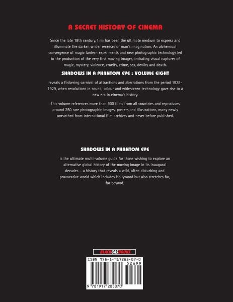 Since the late 19th century, film has been the ultimate medium by which to express and illuminate the darker, wilder recesses of man's imagination. An alchemical convergence of magic lantern experiments and new photographic technology led to the production of the very first moving images, including visual captures of magic, mystery, violence, cruelty, crime, sex, nudity, devilry and death. SHADOWS IN A PHANTOM EYE is an extensive and unprecedented 15-volume book series that reveals a flickering carnival of attractions and aberrations, from the ground-breaking motion capture experiments conceived by Eadweard Muybridge in 1872 to the shocking documentary footage of atrocity, destruction and horror which emerged from the ruins of war-torn Europe in the late 1940s. This is the ultimate multi-volume guide for those wishing to explore an alternative global history of the moving image in its inaugural decades - a history that reveals a wild, often disturbing and provocative world which includes Hollywood but also stretches far, far beyond. SHADOWS IN A PHANTOM EYE Volume 8 covers the period 1928-1929, when revolutions in sound, color and widescreen technology gave rise to a new era in cinema's history. This volume references more than 900 films from all countries and reproduces around 250 rare photographic images, posters and illustrations, many newly unearthed from international film archives and never before published.