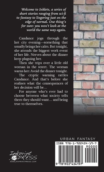 Candance jogs through the hot city evening-something that usually brings her calm. But tonight, she attends the biggest work event of her life. Nerves about the dinner keep plaguing her. Then she trips over a little old woman in the street. The woman warns her: Avoid the dinner tonight. The cryptic warning rattles Candance. And that's before she realises what the consequences of her decision will be... For anyone who's ever had to choose between what society tells them they should want... and being true to themselves.