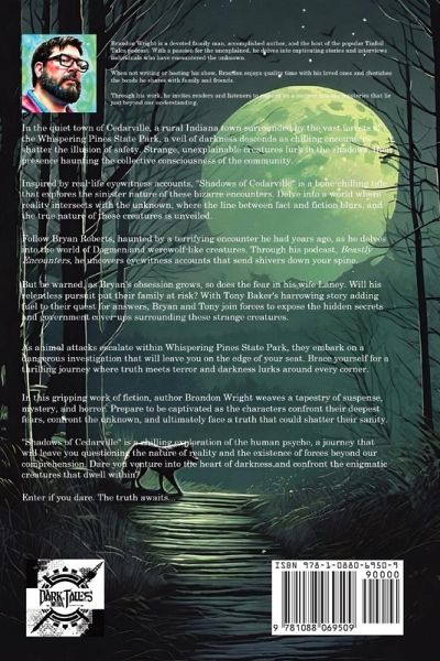 In the quiet town of Cedarville, a rural Indiana town surrounded by the vast forests of the Whispering Pines State Park, a veil of darkness descends as chilling encounters shatter the illusion of safety. Strange, unexplainable creatures lurk in the shadows, their presence haunting the collective consciousness of the community. Inspired by real-life eyewitness accounts, "Shadows of Cedarville" is a bone-chilling tale that explores the sinister nature of these bizarre encounters. Delve into a world where reality intersects with the unknown, where the line between fact and fiction blurs, and the true nature of these creatures is unveiled. Follow Bryan Roberts, haunted by a terrifying encounter he had years ago, as he delves into the world of Dogmen and werewolf-like creatures. Through his podcast, Beastly Encounters, he uncovers eyewitness accounts that send shivers down your spine. But be warned, as Bryan's obsession grows, so does the fear in his wife Laney. Will his relentless pursuit put their family at risk? With Tony Baker's harrowing story adding fuel to their quest for answers, Bryan and Tony join forces to expose the hidden secrets and government cover-ups surrounding these strange creatures. As animal attacks escalate within Whispering Pines State Park, they embark on a dangerous investigation that will leave you on the edge of your seat. Brace yourself for a thrilling journey where truth meets terror and darkness lurks around every corner. In this gripping work of fiction, author Brandon Wright weaves a tapestry of suspense, mystery, and horror. Prepare to be captivated as the characters confront their deepest fears, confront the unknown, and ultimately face a truth that could shatter their sanity. "Shadows of Cedarville" is a chilling exploration of the human psyche, a journey that will leave you questioning the nature of reality and the existence of forces beyond our comprehension. Dare you venture into the heart of darkness and confront the enigmatic creatures that dwell within? Enter if you dare. The truth awaits...