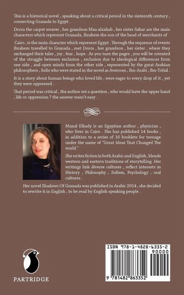 This is a historical novel, speaking about a critical period in the sixteenth century, connecting Granada to Egypt. Dorra, a carpet weaver, her grandson Maa-alzahab, and her sister Sahar are the main characters that represent Granada. Ibrahem, the son of the head of merchants of Cairo, is the main character that represents Egypt. Through the sequence of events, Ibrahem travels to Granada and meets Dorra, her grandson, and her sister, and there they exchange their tales, joys, fears, hopes. As you turn the pages, you will be oriented of the struggle between exclusion, seclusion due to ideological differences from one side and open minds from the other side, represented by the great Arabian philosophers, Sufis who were stated in the novel as Averroes, Ibn-Arabi and Ibn-Tofail. It is a story about human beings who loved life, were eager for every drop of it, yet were oppressed. That period was critical. The author sets a question: "Who would have the upper hand- life or oppression?" The answer isn't easy.