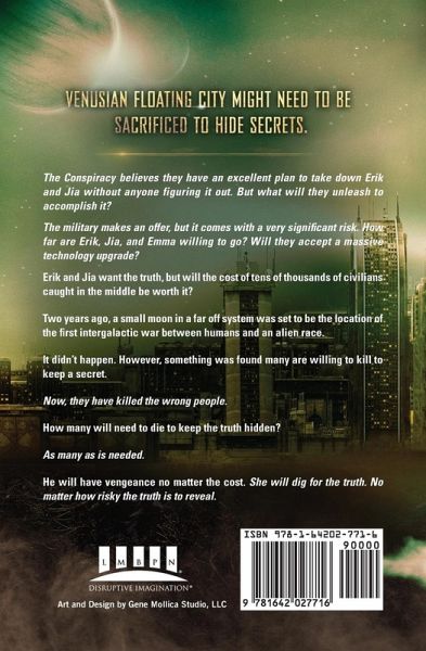A Venusian floating city might need to be sacrificed to hide secrets. The Conspiracy believes they have an excellent plan to take down Erik and Jia without anyone figuring it out. But what will they unleash to accomplish it? The military makes an offer, but it comes with a very significant risk. How far are Erik, Jia, and Emma willing to go? Will they accept a massive technology upgrade? Erik and Jia want the truth, but will the cost of tens of thousands of civilians caught in the middle be worth it? Two years ago, a small moon in a far-off system was set to be the location of the first intergalactic war between humans and an alien race. It didn't happen. However, something was found that many are willing to kill to keep a secret. Now they have killed the wrong people. How many will need to die to keep the truth hidden? As many as is needed. He will have vengeance, no matter the cost. She will dig for the truth, no matter how risky the truth is to reveal.