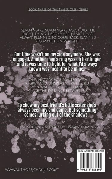 Seven years. Seven years ago, I did the right thing. I broke her heart. I had always planned to come back. Planned to make things right. But time wasn't on my side anymore. She was engaged. Another man's ring was on her finger, and it was time to fight for what I'd always known was meant to be mine. Our history was painted with regret and unspoken truths, but now, I finally have the chance to close the distance between us. To show my best friend's little sister she's always been my end game. But something comes lurking out of the shadows. Something neither of us saw coming. ¿Book 3 of the Timber Creek Series. Series will contain interconnected standalones. Please read reader note for TW.