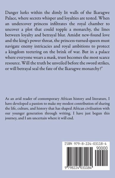 Danger lurks within the dimly lit walls of the Ikaragwe Palace, where secrets whisper and loyalties are tested. When an undercover princess infiltrates the royal chamber to uncover a plot that could topple a monarchy, the lines between loyalty and betrayal blur. Amidst new-found love and the king's power threat, the princess-turned-queen must navigate enemy intricacies and royal ambitions to protect a kingdom teetering on the brink of war. But in a palace where everyone wears a mask, trust becomes the most scarce resource. Will the truth be unveiled before the sword strikes, or will betrayal seal the fate of the Ikaragwe monarchy?"