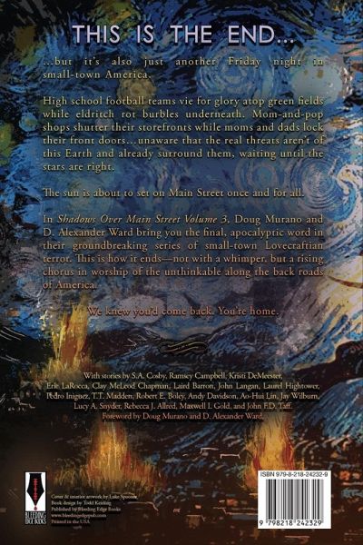 This is the end... ...but it's also just another Friday night in small-town America. High school football teams vie for glory atop green fields while eldritch rot burbles underneath. Mom-and-pop shops shutter their storefronts while moms and dads lock their front doors...unaware that the real threats aren't of this Earth and already surround them, waiting until the stars are right. The Sun is about to set on Main Street once and for all. In Shadows Over Main Street Volume 3, Doug Murano and D. Alexander Ward bring you the final, apocalyptic word in their groundbreaking series of small-town Lovecraftian terror. This is how it ends-not with a whimper, but a rising chorus in worship of the unthinkable along the back roads of America. We knew you'd come back. You're home. Featuring new fiction from S.A. Cosby, Ramsey Campbell, Kristi DeMeester, Eric LaRocca, Clay McLeod Chapman, Laird Barron, and more!
