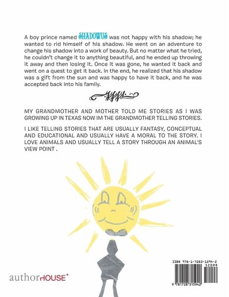 A boy prince named Shadowus was not happy with his shadow; he wanted to rid himself of his shadow. He went on an adventure to change his shadow into a work of beauty. But no matter what he tried, he couldn't change it to anything beautiful, and he ended up throwing it away and then losing it. Once it was gone, he wanted it back and went on a quest to get it back. In the end, he realized that his shadow was a gift from the sun and was happy to have it back, and he was accepted back into his family.