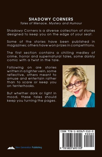 SHADOWY CORNERS Tales of Menace, Mystery and Humour Shadowy Corners is a diverse collection of stories designed to keep you on the edge of your seat. Some of the stories have been published in magazines; others have won prizes in competitions. The first section contains a chilling medley of crime, horror and supernatural tales, some darkly comic with a twist in the tale. Following on are stories written in a lighter vein, some reflective, others meant to amuse and entertain rather than to scare or keep you on tenterhooks. But whether dark or light in mood, these tales should keep you turning the pages.