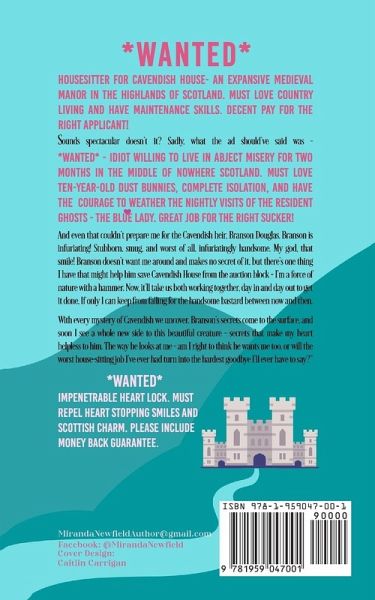 WANTED:Housesitter for Cavendish House, an expansive medieval manor in the Highlands of Scotland. Must love country living and have maintenance skills. Decent pay for right applicant. Sounds spectacular, doesn't it? Sadly, what the ad should've said was - WANTED: Idiot willing to live in abject misery for two months in the middle of nowhere Scotland. Must love ten-year-old dust bunnies, complete isolation, and have the courage to weather the nightly visits of the Blue Lady - the resident ghost. Great job for the right sucker! And even that couldn't prepare me for the Cavendish heir, Branson Douglas. Branson is infuriating! Stubborn, smug, and worst of all, infuriatingly handsome. My god, that smile! Branson doesn't want me around and makes no secret of it, but there's one thing I have that might help him save Cavendish House from the auction block - I'm a force of nature with a hammer. Now, it'll take us both working together, day in and day out to get it done. If only I can keep from falling for the handsome bastard between now and then. With every mystery of Cavendish we uncover, Branson's secrets come to the surface, and soon I see a whole new side to this beautiful creature - secrets that make my heart helpless to him. The way he looks at me - am I right to think he wants me too, or will the worst house-sitting job I've ever had turn into the hardest goodbye I'll ever have to say?" Wanted: Impenetrable heart lock. Must repel heart-stopping smiles and Scottish charm. Please include money back guarantee.