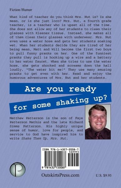 Are you ready for some shaking up? What kind of teacher do you think Mrs. Nut is? Is she mean, or is she just loco? Mrs. Nut, a fourth grade teacher, is a teacher who is upset all of the time. She does not allow any of her students to clean their glasses with Kleenex tissue. Instead, she makes all of them clean their glasses with underwear. Mrs. Nut even uses a water hose and gets her students soaking wet. When her students decide they are tired of her being mean, Matt and Will become the first two boys to pull funny pranks on her. One of the funniest pranks they pull is hooking up a wire and a battery to her water faucet. When she tries to use the water hose, she gets shocked and screams down the hall loudly, "The water bit me!" They use many amusing pranks to get even with her. Read and enjoy the humorous adventures of Mrs. Nut and her students.