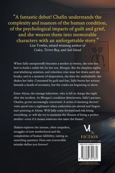 "Shocking" Valerie Taylor, author of A Whale of a Murder: A Venus Bixby Mystery "Gripping" Barbara Claypole White, bestselling author of The Perfect Son "Unforgettable" Lisa Towles, award winning author of Salt Island When Sally unexpectedly becomes a mother at twenty, she tries her best to build a stable life for her son, Morgan. But the sleepless nights, overwhelming isolation, and relentless cries wear her down until she breaks, and in a moment of desperation, she does the unthinkable: she shakes her baby. Consumed by guilt and fear, Sally buries her actions beneath a facade of normalcy, but the cracks are beginning to show. Enter Alyssa, the teenage babysitter, who is left in charge the night after the incident. As Morgan's condition deteriorates, Sally's partner, Charles, grows increasingly concerned. A series of alarming doctors' visits spiral into a nightmare when authorities are alerted and fingers start pointing at Alyssa. Will Sally come forward and risk losing everything, or will she try to maintain the illusion of being a perfect mother-even if it means someone else takes the blame? Shaken explores the intense, often unspoken, struggles of new motherhood and the complexities of human fallibility, raising an unsettling question: Does one irreversible mistake define you forever? Perfect for fans of Jodi Picoult, Lisa Jewell, and Freida McFadden.