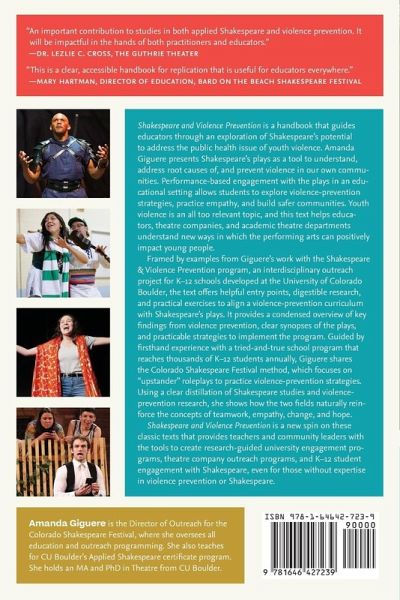 Shakespeare and Violence Prevention is a handbook that guides educators through an exploration of Shakespeare's potential to address the public health issue of youth violence. Amanda Giguere presents Shakespeare's plays as a tool to understand, address root causes of, and prevent violence in our own communities. Performance-based engagement with the plays in an educational setting allows students to explore violence-prevention strategies, practice empathy, and build safer communities. Youth violence is an all too relevant topic, and this text helps educators, theatre companies, and academic theatre departments understand new ways in which the performing arts can positively impact young people. Framed by examples from Giguere's work with the Shakespeare & Violence Prevention program, an interdisciplinary outreach project for K-12 schools developed at the University of Colorado Boulder, the text offers helpful entry points, digestible research, and practical exercises to align a violence-prevention curriculum with Shakespeare's plays. It provides a condensed overview of key findings from violence prevention, clear synopses of the plays, and practicable strategies to implement the program. Guided by firsthand experience with a tried-and-true school program that reaches thousands of K-12 students annually, Giguere shares the Colorado Shakespeare Festival method, which focuses on "upstander" roleplays to practice violence-prevention strategies. Using a clear distillation of Shakespeare studies and violence-prevention research, she shows how the two fields naturally reinforce the concepts of teamwork, empathy, change, and hope. Shakespeare and Violence Prevention is a new spin on these classic texts that empowers teachers and community leaders to use these tools to create research-guided university engagement programs, theatre company outreach programs, and K-12 student engagement with Shakespeare, even for those without expertise in violence prevention or Shakespeare.