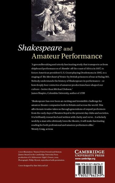 From the Hamlet acted on a galleon off Africa to the countless outdoor productions of A Midsummer Night's Dream that now defy each English summer, Shakespeare and Amateur Performance explores the unsung achievements of those outside the theatrical profession who have been determined to do Shakespeare themselves. Based on extensive research in previously unexplored archives, this generously illustrated and lively work of theatre history enriches our understanding of how and why Shakespeare's plays have mattered to generations of rude mechanicals and aristocratic dilettantes alike: from the days of the Theatres Royal to those of the Little Theatre Movement, from the pioneering Winter's Tale performed in eighteenth-century Salisbury to the Merchant of Venice performed by Allied prisoners for their Nazi captors, and from the how-to book which transforms Mercutio into Yankee Doodle to the Napoleonic counterspy who used Richard III as a tool of surveillance.