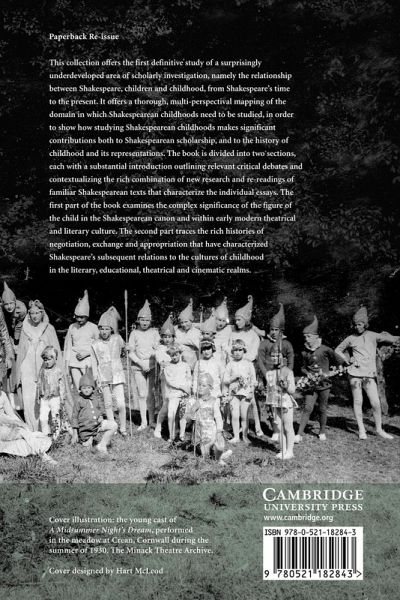 This 2007 collection offered the first definitive study of a surprisingly underdeveloped area of scholarly investigation, namely the relationship between Shakespeare, children and childhood from Shakespeare's time to the present. It offers a thorough mapping of the domain in which Shakespearean childhoods need to be studied, in order to show how studying Shakespearean childhoods makes significant contributions both to Shakespearean scholarship, and to the history of childhood and its representations. The book is divided into two sections, each with a substantial introduction outlining relevant critical debates and contextualizing the rich combination of fresh research and readings of familiar Shakespearean texts that characterize the individual essays. The first part of the book examines the significance of the figure of the child in the Shakespearean canon. The second part traces the rich histories of negotiation, exchange and appropriation that have characterised Shakespeare's subsequent relations to the cultures of childhood in literary realms.