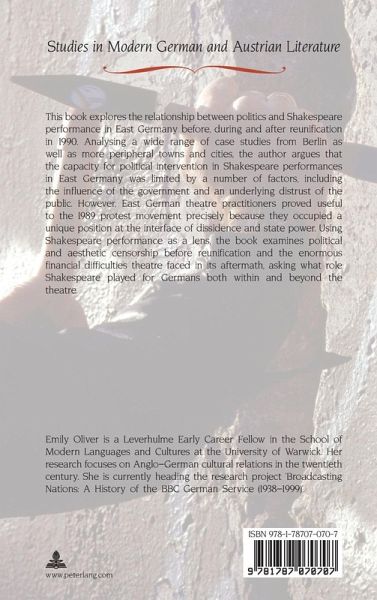 This book explores the relationship between politics and Shakespeare performance in East Germany before, during and after reunification in 1990. Analysing a wide range of case studies from Berlin as well as more peripheral towns and cities, the author argues that the capacity for political intervention in Shakespeare performances in East Germany was limited by a number of factors, including the influence of the government and an underlying distrust of the public. However, East German theatre practitioners proved useful to the 1989 protest movement precisely because they occupied a unique position at the interface of dissidence and state power. Using Shakespeare performance as a lens, the book examines political and aesthetic censorship before reunification and the enormous financial difficulties theatre faced in its aftermath, asking what role Shakespeare played for Germans both within and beyond the theatre.