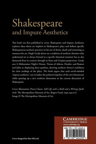 Shakespeare and Impure Aesthetics explores ideas about art implicit in Shakespeare's plays and defines specific Shakespearean aesthetic practices in his use of desire, death and mourning as resources for art. Hugh Grady draws on a tradition of aesthetic theorists who understand art as always formed in a specific historical moment but as also distanced from its context through its form and Utopian projections. Grady sees A Midsummer Night's Dream, Timon of Athens, Hamlet, and Romeo and Juliet as displaying these qualities, showing aesthetic theory's usefulness for close readings of the plays. The book argues that such social-minded 'impure aesthetics' can revitalize the political impulses of the new historicism while opening up a new aesthetic dimension in the current discussion of Shakespeare.