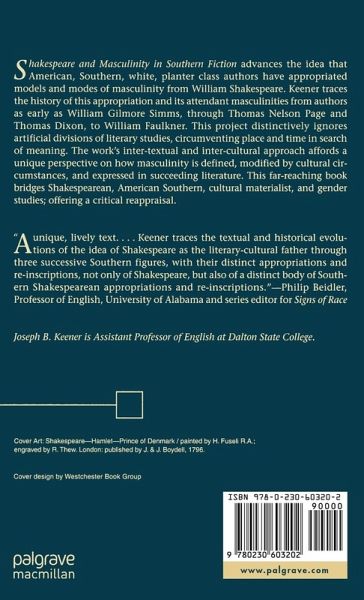 The book advances the idea that American, Southern, white, planter class authors have appropriated models and modes of masculinity from William Shakespeare. Keener traces the history of this appropriation and its attendant masculinities from authors as early as William Gilmore Simms, through Thomas Nelson Page and Thomas Dixon, to William Faulkner.