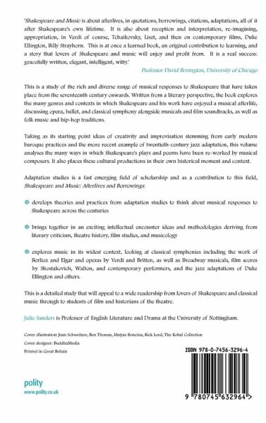 This is a study of the rich and diverse range of musical responses to Shakespeare that have taken place from the seventeenth century onwards. Written from a literary perspective, the book explores the many genres and contexts in which Shakespeare and his work have enjoyed a musical afterlife discussing opera, ballet, and classical symphony alongside musicals and film soundtracks, as well as folk music and hip-hop traditions.