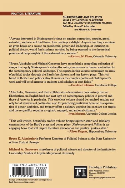 Introduction Chapter 1 On Shakespeare's Commanders and Kings: Leadership Politics and Hubris Chapter 2 Macbeth and Political Corruption Chapter 3 A Dionysian Hamlet Chapter 4 Antony and Cleopatra: Empire Globalization and the Clash of Civilizations Chapter 5 Decisions Decisions Decisions: Tyrannicide in Julius Caesar Chapter 6 Why Iago Is Evil: Othello and the American Desire to Understand Corruption Chapter 7 Richard III Tyranny and the Modern Financial Elite Chapter 8 Cymbeline and the Origins of Modern Liberty Chapter 9 Shakespeare's Henry V and Responsibility for War Chapter 10 Troilus and Cressida: The Value of Reputations and the Corruption of Society Chapter 11 Deception and Persuasion in Measure for Measure Chapter 12 Absurdity and Amateur Hour in the American Political Forest: A Midsummer Night's Dream and the Nightmare of Polarization Index About the Editors and Contributors