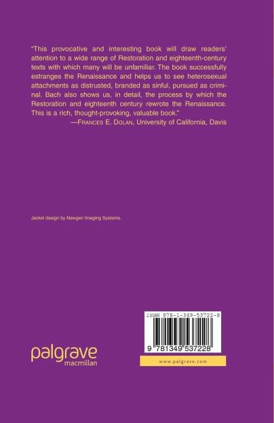 "Overall this text is lively and thought-provoking, and is a welcome contribution to the growing body of work on sexual representation and its history." - Comparative Drama"This provocative and interesting book will draw readers' attention to a wide range of Restoration and eighteenth-century texts with which many will be unfamiliar. The book successfully estranges the Renaissance and helps us to see heterosexual attachments as distrusted, branded as sinful, pursued as criminal. Bach also shows us, in detail, the process by which the Restoration and eighteenth century rewrote the Renaissance. This is a rich, thought-provoking, valuable book." - Frances E. Dolan, University of California, Davis