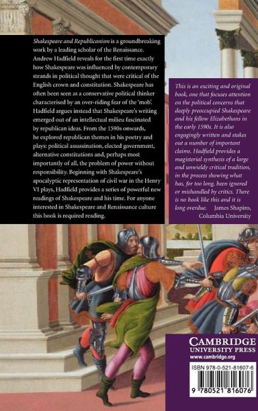 This groundbreaking work, first published in 2005, reveals exactly how Shakespeare was influenced by contemporary strands in political thought that were critical of the English crown and constitution. Shakespeare has often been seen as a conservative political thinker characterised by an over-riding fear of the 'mob'. Hadfield argues instead that Shakespeare's writing emerged out of an intellectual milieu fascinated by republican ideas. From the 1590s onwards, he explored republican themes in his poetry and plays: political assassination, elected government, alternative constitutions, and, perhaps most importantly of all, the problem of power without responsibility. Beginning with Shakespeare's apocalyptic representation of civil war in the Henry VI plays, Hadfield provides a series of powerful new readings of Shakespeare and his time. For anyone interested in Shakespeare and Renaissance culture, this book is required reading.