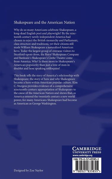 Why do so many Americans celebrate Shakespeare, a long-dead English poet and playwright? By the nineteenth century newly independent America had chosen to reject the British monarchy and Parliament, class structure and traditions, yet their citizens still made William Shakespeare a naturalized American hero. Today the largest group of overseas visitors to Stratford-upon-Avon, the Royal Shakespeare Company and Bankside's Shakespeare's Globe Theatre come from America. Why? Is there more to Shakespeare's American popularity than just a love of men in doublet and hose speaking soliloquies? This book tells the story of America's relationship with Shakespeare. The story of how and why Shakespeare became a hero within American popular culture. Sturgess provides evidence of a comprehensive nineteenth-century appropriation of Shakespeare to the cause of the American Nation and shows that, as America entered the twentieth century a new world power, for many Americans Shakespeare had become as American as George Washington.