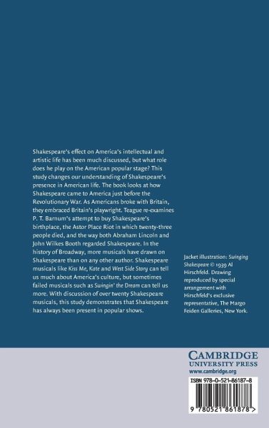 Shakespeare's effect on America's intellectual and artistic life has been much discussed, but what role does he play on the American popular stage? This study changes our understanding of Shakespeare's presence in American life. The book looks at how Shakespeare came to America just before the Revolutionary War. As Americans broke with Britain, they embraced Britain's playwright. Teague re-examines P. T. Barnum's attempt to buy Shakespeare's Birthplace, the Astor Place Riot when twenty-three people died, and the way both Abraham Lincoln and John Wilkes Booth regarded Shakespeare. In the history of Broadway, more musicals have drawn on Shakespeare than any other author. Shakespeare musicals like Kiss Me, Kate and West Side Story can tell us much about America's culture, but sometimes failed musicals such as Swingin' the Dream can tell us more. With discussion of over twenty Shakespeare musicals, this study demonstrates that Shakespeare has always been present in popular shows.