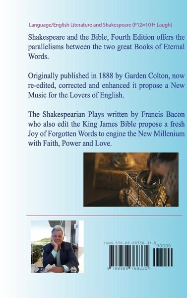 The Third Edition of 'Shakespeare and the Bible' (Hardcover), is an inestimable source of inspiration for the lovers of the English Language. This new edition still more polished and strong, reinforce the Holy Word and the English Word to engine the New Millennium with Faith, Power and Love, because show parallelism between the KJV (King James Bible Version) and the Shakespearian plays. We know both books were edited by Francis Bacon.