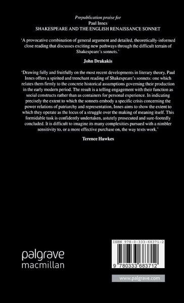 This book is an analysis of the sonnet in the English Renaissance. It especially traces the relations between Shakespeare's sonnets and the ways in which other writers use the form. It looks at how the poetry fits into the historical situation at the time, with regard to images of the family and of women. Its exploration of these issues is informed by much recent work in critical theory, which it tries to make as accessible as possible.