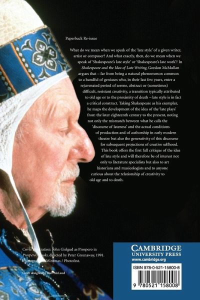 What do we mean when we speak of the 'late style' of a given writer, artist or composer? And what exactly do we mean by 'late Shakespeare'? Gordon McMullan argues that, far from being a natural phenomenon common to a handful of geniuses in old age or in proximity to death, late style is in fact a critical construct. Taking Shakespeare as his exemplar, he maps the development of the 'discourse of lateness' from the eighteenth century to the present, noting not only the mismatch between that discourse and the actual conditions for authorship in early modern theatre but also its generativity for subsequent projections of creative selfhood. He thus offers the first critique of the idea of late style, which will be of interest not only to literature specialists but also to art historians, musicologists and anyone curious about the relationship of creativity to old age and to death.