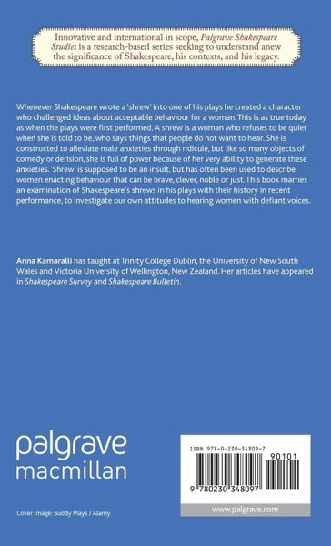 An investigation of the many ways that Shakespeare uses the defiant voice of the shrew. Kamaralli explores how modern performance practice negotiates the possibilities for staging these characters who refuse to conform to standards of acceptable behaviour for women, but are among Shakespeare's bravest, wisest and most vivid creations.