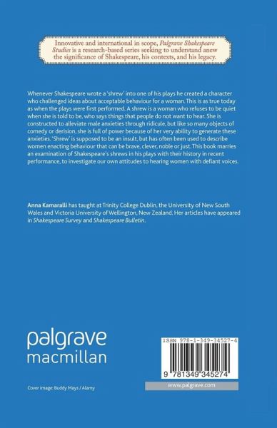 An investigation of the many ways that Shakespeare uses the defiant voice of the shrew. Kamaralli explores how modern performance practice negotiates the possibilities for staging these characters who refuse to conform to standards of acceptable behaviour for women, but are among Shakespeare's bravest, wisest and most vivid creations.