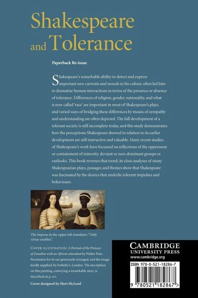 Shakespeare's remarkable ability to detect and express important new currents and moods in his culture often led him to dramatise human interactions based on the presence or absence of tolerance. Differences of religion, gender, nationality and what is now called 'race' are important in most of Shakespeare's plays, and varied ways of bridging these differences by means of sympathy and understanding are often depicted. The full development of a tolerant society is still incomplete, and this study demonstrates how the perceptions Shakespeare showed in relation to its earlier development are still instructive and valuable today. Many recent studies of Shakespeare's work have focused on reflections of the oppression or containment of minority, deviant or non-dominant groups or outlooks. This book reverses that trend and examines how Shakespeare was fascinated by the desires that underlie tolerance, including religion, race and sexuality, through close analysis of many Shakespearian plays, passages and themes.