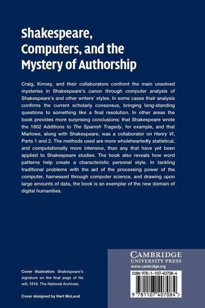 In this book Craig, Kinney and their collaborators confront the main unsolved mysteries in Shakespeare's canon through computer analysis of Shakespeare's and other writers' styles. In some cases their analysis confirms the current scholarly consensus, bringing long-standing questions to something like a final resolution. In other areas the book provides more surprising conclusions: that Shakespeare wrote the 1602 additions to The Spanish Tragedy, for example, and that Marlowe along with Shakespeare was a collaborator on Henry VI, Parts 1 and 2. The methods used are more wholeheartedly statistical, and computationally more intensive, than any that have yet been applied to Shakespeare studies. The book also reveals how word patterns help create a characteristic personal style. In tackling traditional problems with the aid of the processing power of the computer, harnessed through computer science, and drawing upon large amounts of data, the book is an exemplar of the new domain of digital humanities.