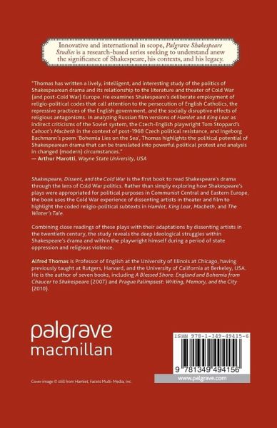 "Thomas has written a lively, intelligent, and interesting study of the politics of Shakespearean drama and its relationship to the literature and theater of Cold-War (and post-Cold-War) Europe. He examines Shakespeare's deliberate employment of religio-political codes that call attention to the persecution of English Catholics, the repressive practices of the English government and the socially disruptive effects of religious antagonisms. In analyzing Russian film versions of Hamlet and King Lear as indirect criticisms of the Soviet system, the Czech-English playwright Tom Stoppard's Cahoot's Macbeth in the context of post-1968 Czech political resistance, and Ingeborg Bachmann's poem 'Bohemia Lies on the Sea,' Thomas highlights the political potential of Shakespearean drama that can be translated into powerful political protest and analysis in changed (modern) circumstances." - Arthur Marotti, Wayne State University, USA