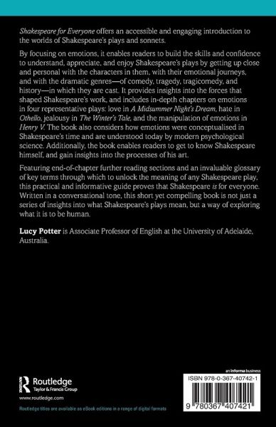 By focusing on emotions, it enables readers to build the skills and confidence to understand, appreciate, and enjoy Shakespeare's plays by getting up close and personal with the characters in them, with their emotional journeys, and with the dramatic genres-of comedy, tragedy, tragicomedy, and history-in which they are cast. It provides insights into the forces that shaped Shakespeare's work, and includes in-depth chapters on emotions in four representative plays: love in A Midsummer Night's Dream, hate in Othello, jealousy in The Winter's Tale, and the manipulation of emotions in Henry V. The book also considers how emotions were conceptualised in Shakespeare's time and are understood today by modern psychological science. Additionally, the book enables readers to get to know Shakespeare himself, and gain insights into the processes of his art.