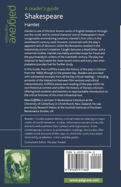 In this Guide, Huw Griffiths traces the history of the play's criticism from the 1660s through to the present day. Readers are provided with substantial excerpts from all the key critical readings - including accounts of the interaction between film versions and critical interpretations. Griffiths places each reading of the play within its own historical context and within the history of literary criticism, offering both students and teachers an approachable introduction to the critical fortunes of this most influential text.